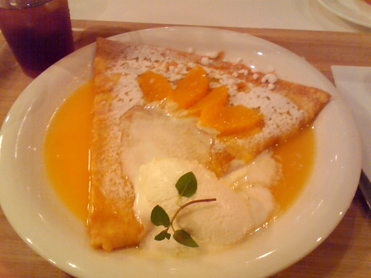 名前の通りオレンジを使ったクレープで、オレンジソースたっぷりなところがクレープシュゼット風な感じ